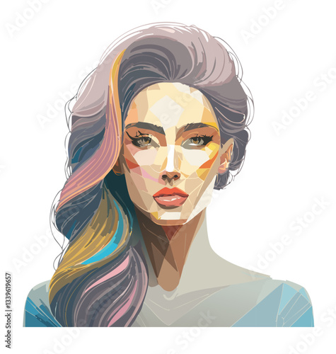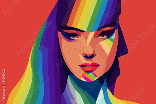 Vektorová ilustrace ženy v růžových slunečních brýlích s nápisem dolaru v retro pop art komickém stylu. Dívá se na život přes růžové brýle.