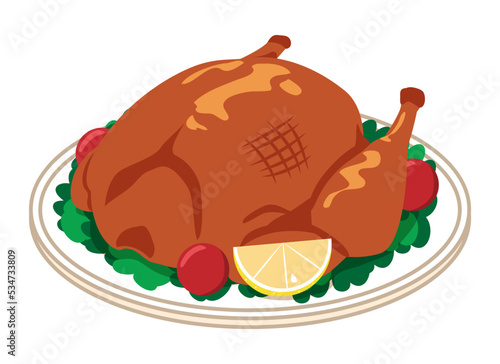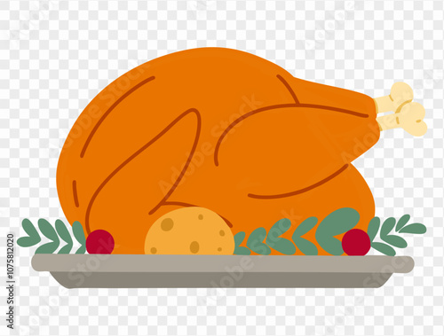 Vektorová ilustrace ženy, která drží podnos s pečenou krůtou díkůvzdání v retro pop art komickém stylu. Bublina.