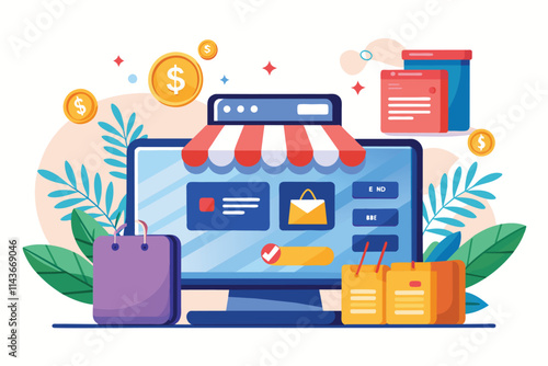 Vektorová ilustrace mladé ženy stojící za barovým pultem. Design interiéru kavárny v plochém stylu.