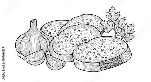 Vektorové inkoust ručně tažené styl sada kulinářských bylin a koření. Kopr, badyán, černý pepř, muškátový oříšek, skořice, mlýnek na pepř, Malta a tlouček skica ilustrace pro recept a tisk.