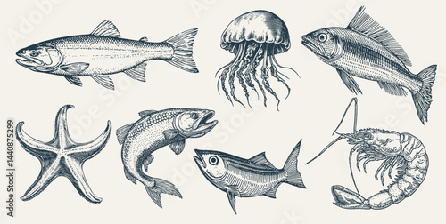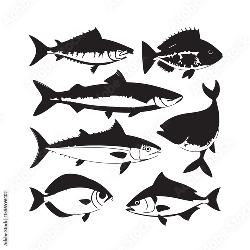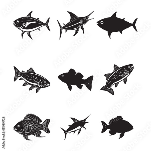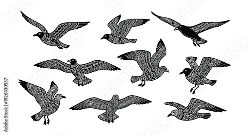 Sada ikon žraloka. Vektorové inkoust ručně kreslené ilustrace izolovaných na bílém pozadí.