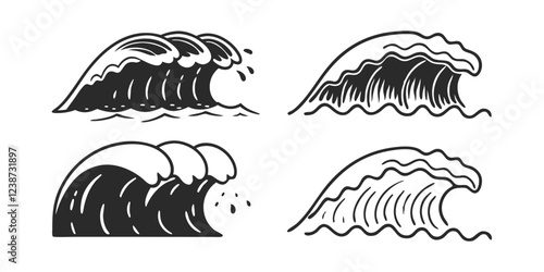 Vlny nastaveny. Vektorové inkoust ručně kreslené ilustrace izolovaných na bílém pozadí.