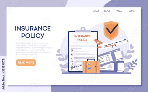 Šablona vstupní stránky pojišťovny. Koncept designu vektorového plochého stylu pro vývoj webových stránek a mobilních stránek. Zdravotní pojištění.