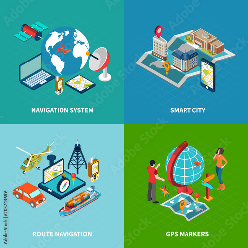 Domácí a servisní roboti vektorový izometrický plakát, sada šablon bannerů. Designové prvky robotů pro lékařské, domácí, bezpečnostní, hotelové a restaurační služby.