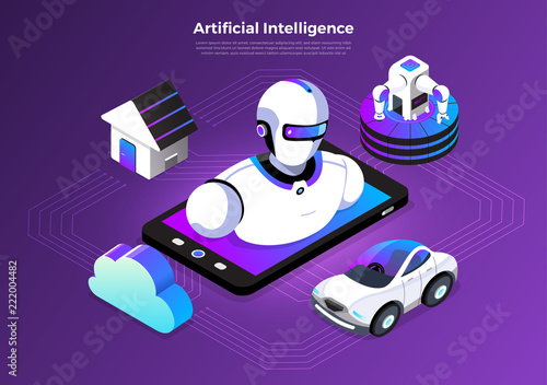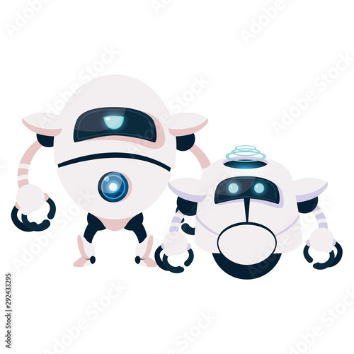 Izometrická sada ikon moderní robotiky. Vektorové izolované ilustrace. Domácí, servisní, průmyslové a bezpečnostní roboty.