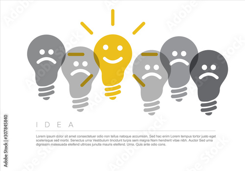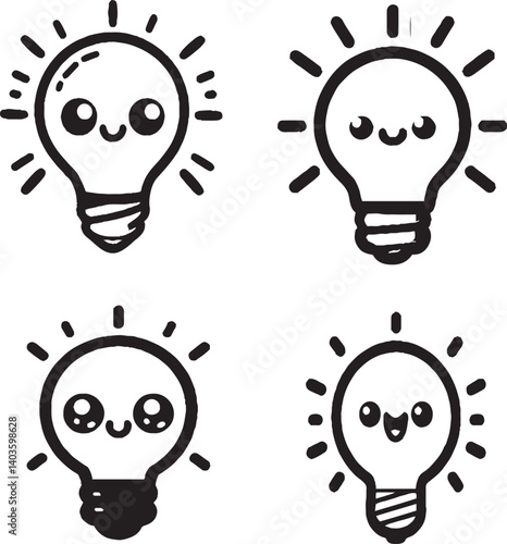 Výrobce emoji žárovky, tvůrce smajlíků. Vektorová sada emotikonových částí obličeje pro vlastní tvorbu emodži elektrické lampy s různými výrazy obličeje.