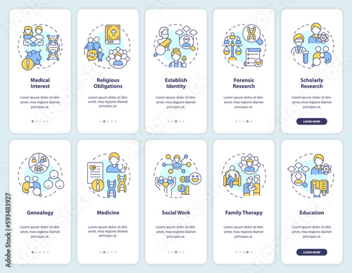 Vektorová sada mobilních aplikací na palubních obrazovkách. Lékařská péče, diagnóza, fyzická porucha, léčba, laboratorní výsledky, příznaky webové šablony a bannery. Tenké linky Art ploché ikony pro webové stránky menu.