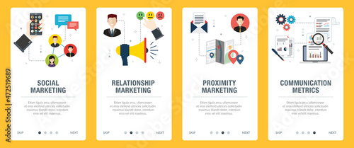 Vektorová sada mobilních aplikací na palubních obrazovkách. Turistická mapa, trasa, jízdní kolo, Kempování, Kavárna, webové šablony taxislužby a bannery. Tenké linky Art ploché ikony pro webové stránky menu.