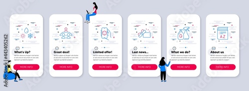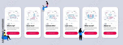 Vektorová sada mobilních aplikací onboarding obrazovky. Návrh, prototypování, webdesign, Software, nástroje, modelování webových šablon a bannerů. Ikony designu ve stylu tenké čáry pro nabídku webových stránek.