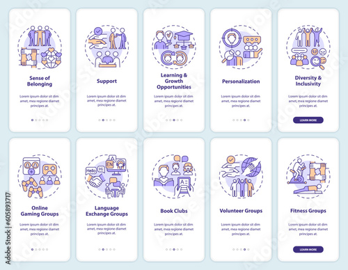 Vektorová sada mobilních aplikací onboarding obrazovky. Návody, knihy, zvukové knihy, nástroje, dovednosti, výzkumné webové šablony a bannery. Ikony designu ve stylu tenké čáry pro nabídku webových stránek.