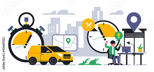 Vector Logistics delivery, transportation, warehouse concept infographic items, icons. Dodávka letadlem, lodí, kamionem, koloběžkou, odvoz zboží ze skladu pomocí konstrukčních prvků nakladače v plochém stylu.