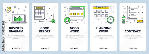Vektorová sada vertikálních bannerů s peněženkou, příjmy, šeková knížka, mince, převést šablony webových stránek. Moderní tenký design plochého stylu.
