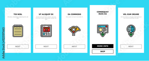 Vektorová sada vertikálních bannerů s výměnou, smlouvou, růstem, vizí, šablonami webových stránek konceptu. Moderní tenké linie plochý styl designové prvky pro web, tisk.