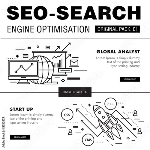 Vektorová sada bannerů s pozorností, zájmem, touhou a akčním konceptem webových šablon. Moderní tenké linie ploché designové symboly, ikony pro web, tisk.
