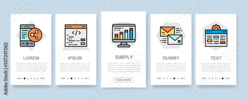 Vektorová sada vertikálních bannerů s fotografií, živý design, restaurování webových stránek, digitální umění, šablony webových stránek Design tools. Moderní tenký design plochého stylu.