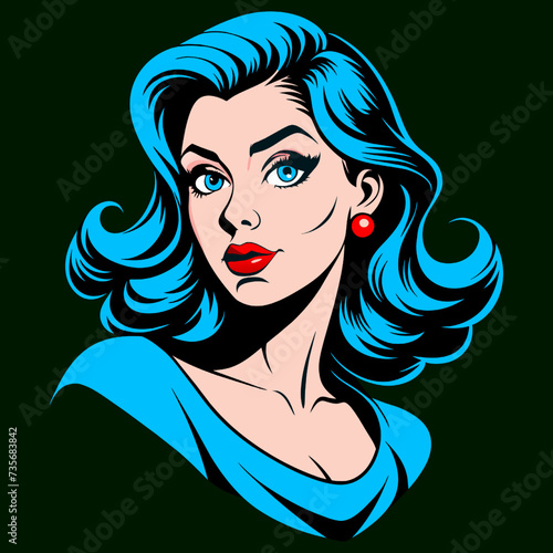 Vektor krásné pin-up dívky s bublinou ve tvaru srdce. Moderní hezká dívka hnědovlasá osoba s dlouhými vlasy. Místo pro text. Pop Art vintage vektor. Dívka hledá kopírovat prostor