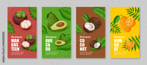 Vektorové sada ovoce bannery s papírem řezané zralé čerstvé červené jablko, žlutá hruška, meruňka a švestka letní ovoce.