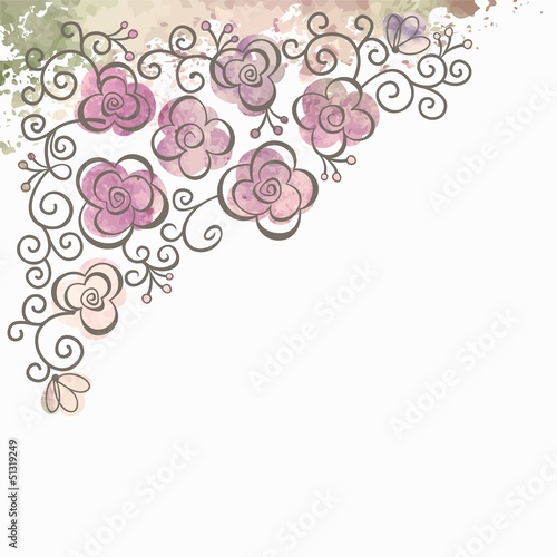 Portrét Krásné mladé dívky s květinovými vlasy. Vektorové papír řez profil zobrazení ilustrace.