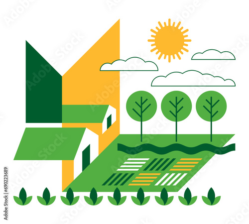 Šablona webových stránek vstupní stránky ekologie. Vektorové papírové řezané ekologicky šetrné zelené město s budovami, větrnými turbínami, stromy a sluncem jasně zářícím. Koncepce ochrany životního prostředí.
