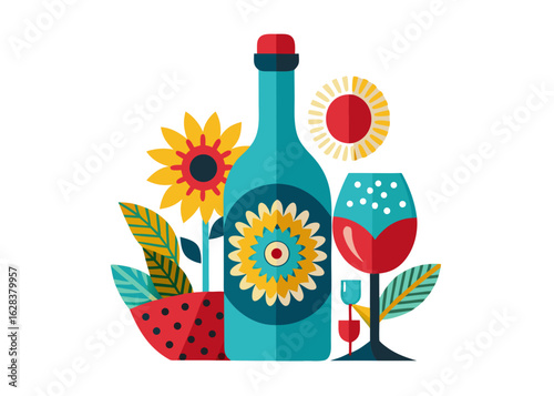 Míchaný nápoj z bobulové šťávy. Vektorový papír řez plakát, banner, leták design šablony. Berry juice skleněná láhev se šťávou šplouchá a čerstvé jahody, třešeň.