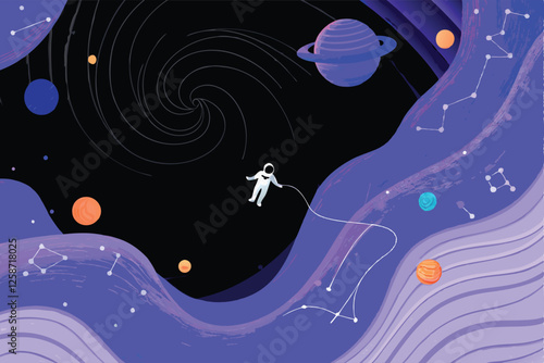 Outer space web banner template. Vektorové papírové řezané nebe, planety, kometa a hvězdy. Koncept průzkumu vesmíru, styl papírového umění.