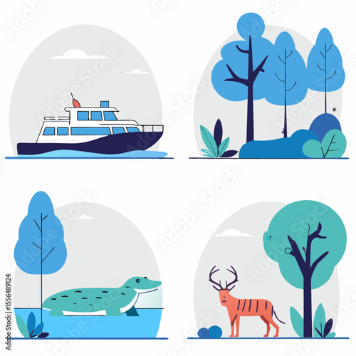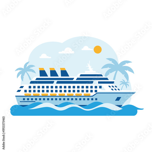 Sea cruise vstupní stránka webové stránky šablony. Vektorový papír řez výletní parník Plovoucí Na vlnách oceánu, delfíni, rackové, ostrovy, turistická letoviska. Koncept námořní plavby.