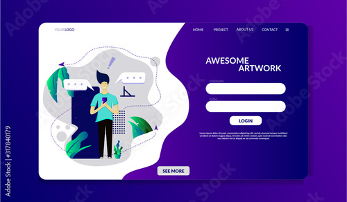 Šablona webových stránek vstupní stránky podvodního světa. Vektorové papírové řezané tropické podvodní mořské jeskyně s korálovým útesem rybí mořské řasy a potápěč plavání s mořskou želvou a žraloky.