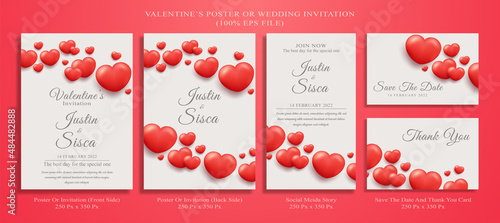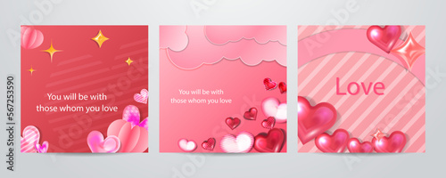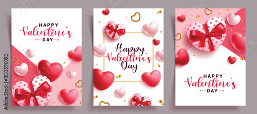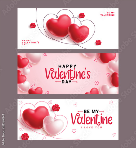 Happy Valentines day Speciální nabídka banner set. Vektorové papírové řezané milostné bannery s červenými a růžovými srdíčky růží. Koncept prodeje a slev.