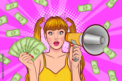 Vektorové ilustrace mladé Afroameričanky, která drží kávu. Sexy pin-up dívka v pop art retro komický styl.