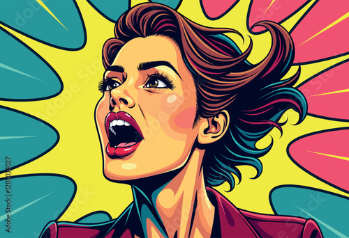 Vektorové ilustrace krásné blond ženy s Pooof řeči bubliny. Sexy pin-up dívka v retro pop art komický styl.