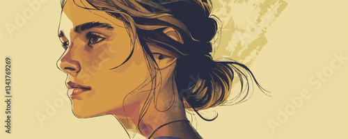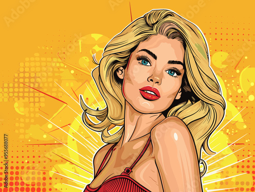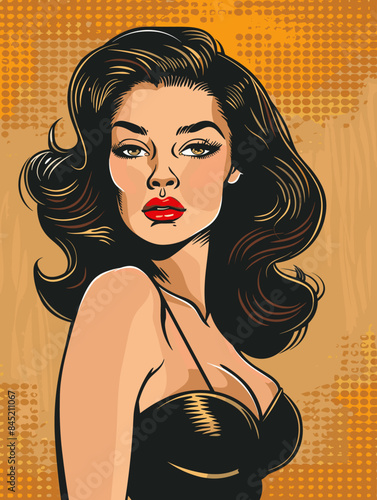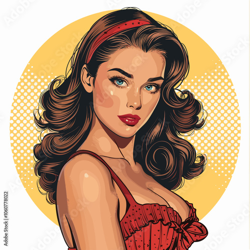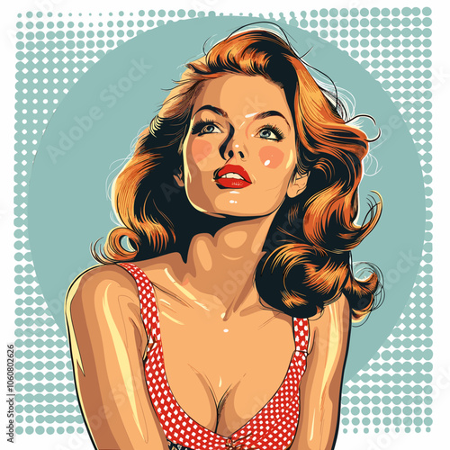 Vektorové pop art krásná žena boční pohled portrét. Zrzavá sexy pin-up dívka se zavřenýma očima v komiksovém stylu.