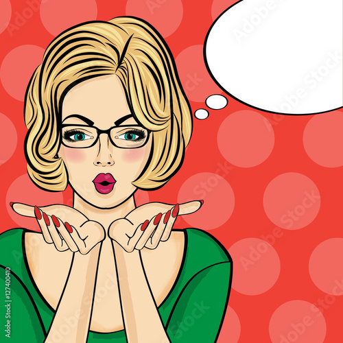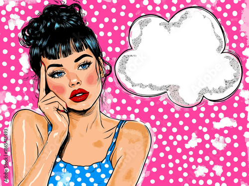 Vektorové ilustrace krásné sexy brunetka žena. Hezká pin-up dívka se zelenýma očima v pop art retro komiksovém stylu.