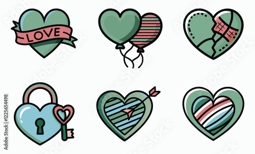 Vektorová sada vintage pop art komických módních milostných odznaků, záplat, samolepek. Prvky pro svatební a Valentines Day blahopřání, tisk.