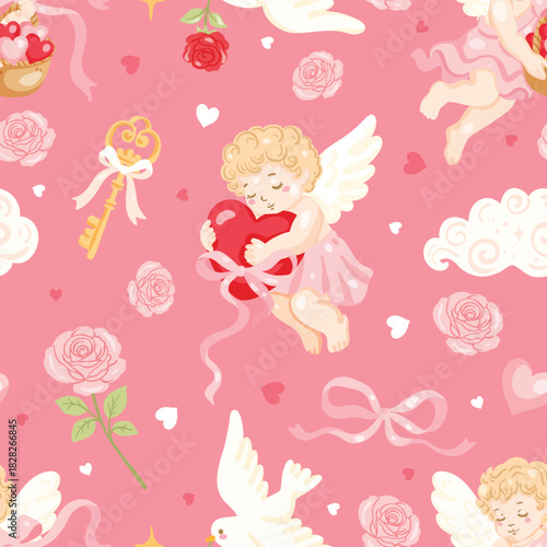 Vektorová ilustrace mladé dívky stojící zpět a pivoňka, pomněnky květiny kolem ní v retro pop art komickém stylu.