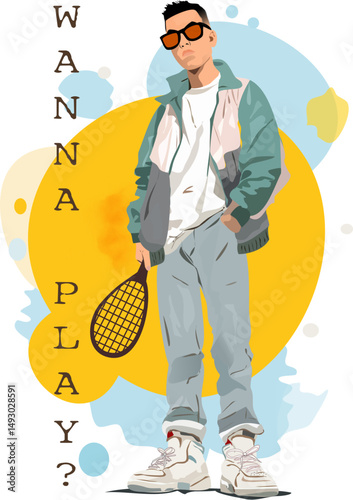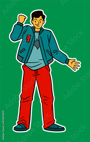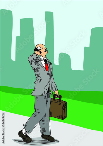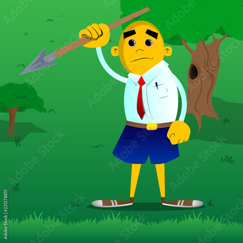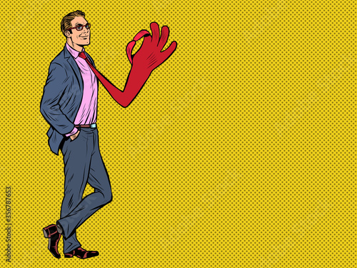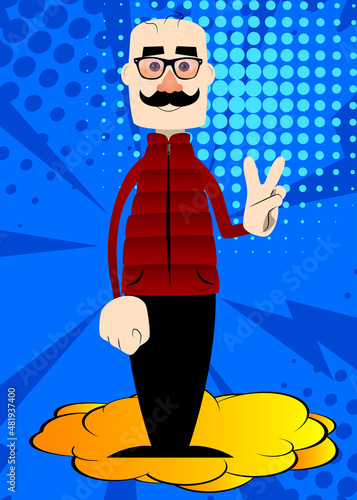 Vektorová ilustrace podnikatele, který drží notebook. Gadgets moderní technologie koncept v retro pop art komické stylu.