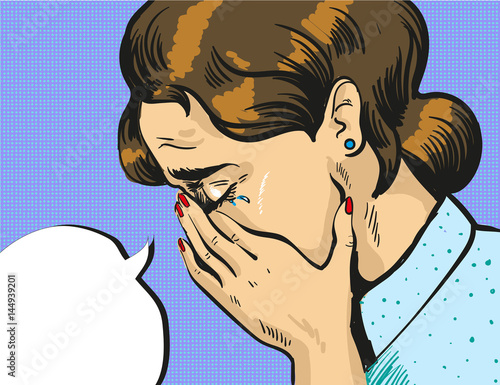 Vektorová ilustrace plačící ženy v retro pop art komickém stylu.