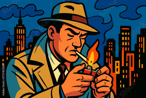Vektorové ilustrace starší muž kouření potrubí v retro pop art komický styl.