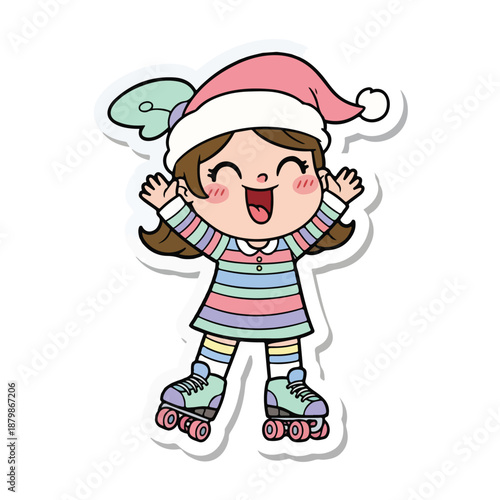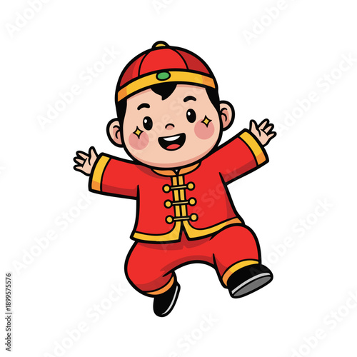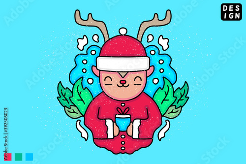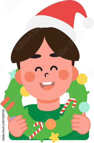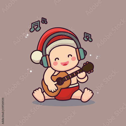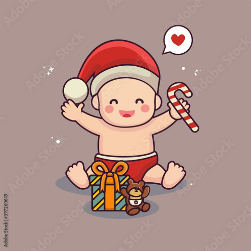 Vektorové ilustrace roztomilé usmívající se dítě v kostýmu Santa Claus. Veselé Vánoce a Šťastný Nový rok koncept v retro pop art komické stylu.