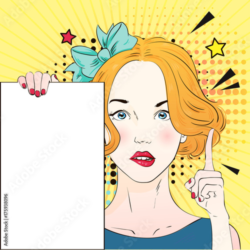 Vektorové ilustrace krásné ženy reklamní parfém. Pin up hezká dívka v retro pop art komické stylu.