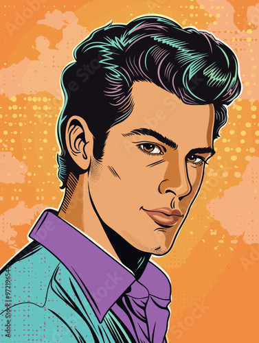Vektorová ilustrace mladého muže ve 3D anaglyfových brýlích v retro pop artovém komiksovém stylu. Stereo brýle pro kino.