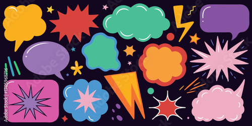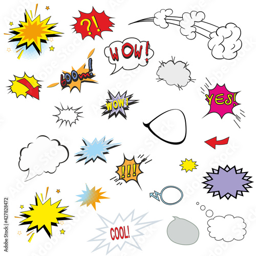 Vektorová sada vintage pop art komických odznaků, záplaty, samolepky a bubliny s módními frázemi a výrazy Ano, Ooops, Hm.