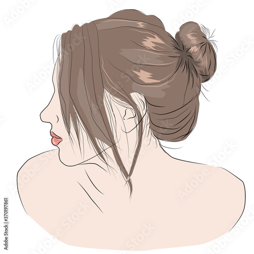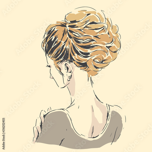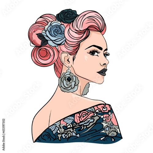 Vektorové ilustrace mladé ženy s tetováním stojící zpět. Pin-up dívka v retro pop art komiksovém stylu.