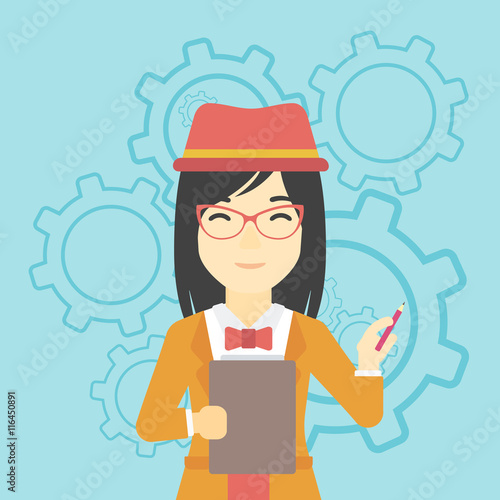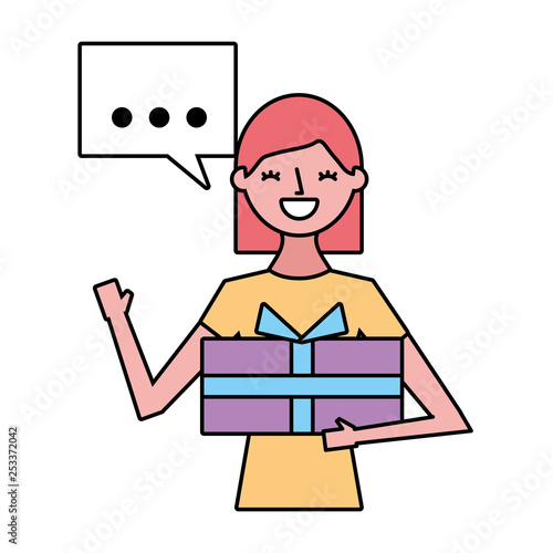 Vektorová ilustrace krásné ženy, která něco ukazuje nebo propaguje, řečová bublina. Retro pop art komický styl.