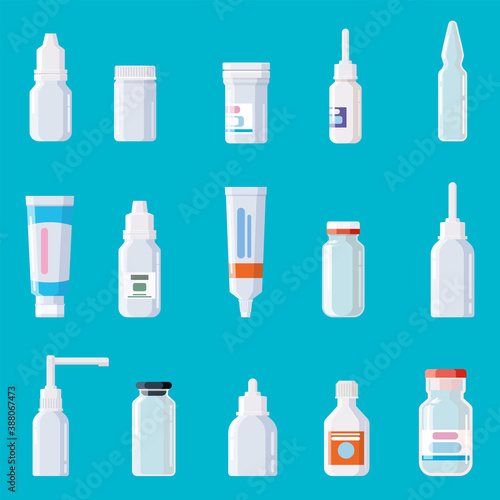 Vektorová sada realistických šablon kosmetických obalů. Prázdné bílé kosmetické přípravky pro péči o pleť plastové nádoby, zkumavky, stříkací lahve, lahve s bezvzduchovou pumpou.