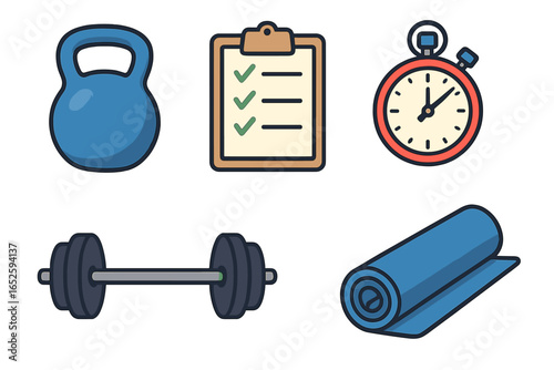 Sada ikon vektorové fitness. Realistické 3D ilustrace izolovaných na bílém pozadí.