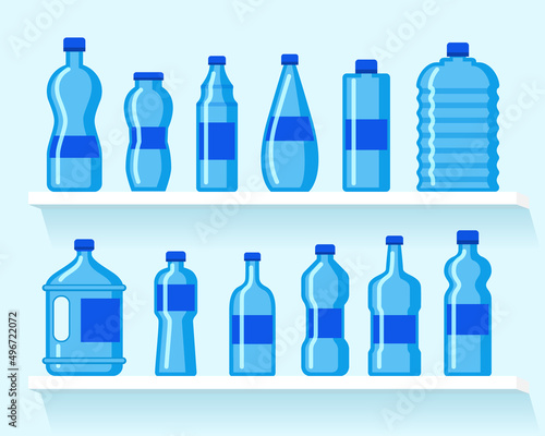 Vektorové realistické plastové lahve na vodu set. Kolekce šablon pro balení vody.