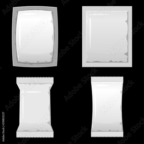 Sada maket vlhčených ubrousků. Vektorové realistické bílé prázdné obalové fólie a plastové nádoby s klapkou pro vlhčené ubrousky izolovaných na bílém pozadí.