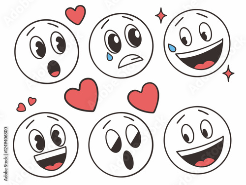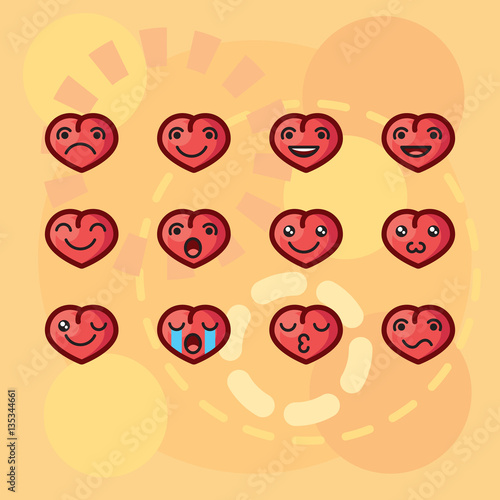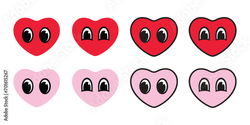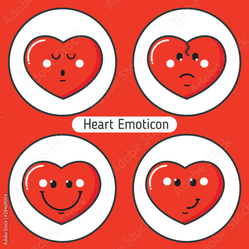 Tvůrce postav emotikonu červeného srdce, tvůrce smajlíků. Vektorová sada emotikonových částí obličeje pro vytvoření vlastního srdce emoji s různými výrazy obličeje. Šťastný Valentýn emoji pack.