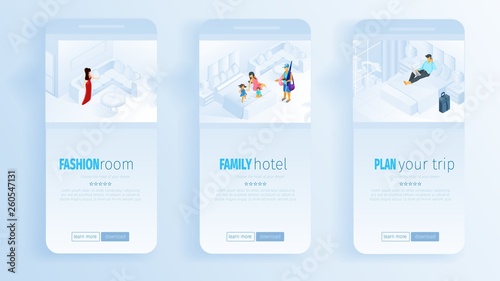 Vektorová sada pohyblivých nebo relokačních konceptů mobilní aplikace onboarding screens. Balení, přemístění a doručovací služby šablony designu webových stránek a webové bannery.