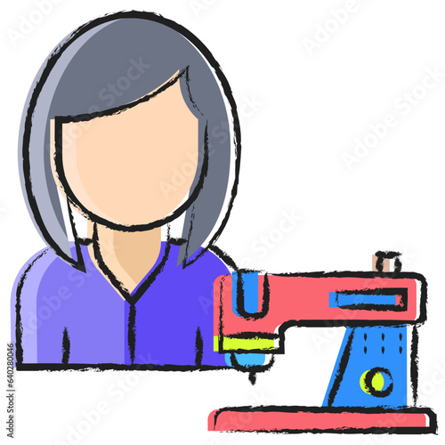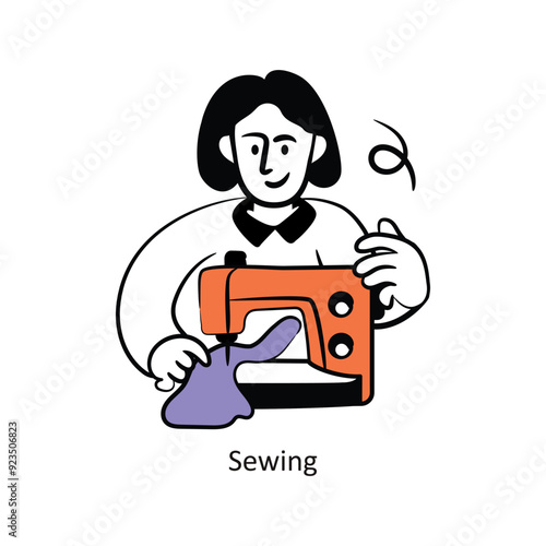 Vektorové ilustrace mladé ženy švadlena šití na stroji. Ateliér, šicí dílna, koncept módního domu v retro pop artovém komiksovém stylu.